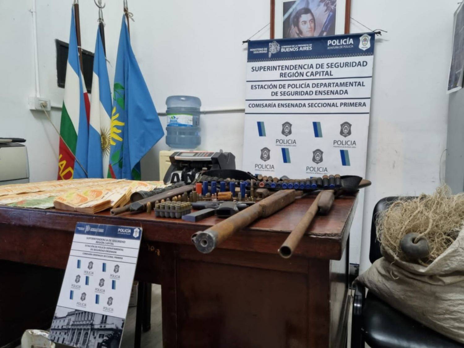 La policía tomó la denuncia y rápidamente se dispuso a investigar el lugar de residencia del sospechoso, solicitando la orden de registro y secuestro. Posteriormente, se lleva a cabo el operativo de allanamiento, donde se halló el arma utilizada en el siniestro, dando cuenta de la tenencia ilegal de la misma, los objetos reclamados y la plata perteneciente a la transacción por el alquiler. Luego se procedió a incautar 1 Pistola 45 con cargador con 6 municiones colocadas, 35 cartuchos de escopeta 12/70, carabina 22 con proyectil, 40 municiones de diversos calibres, 4 garrafas, un trasmallo de pesca, la suma de 1.373.000 pesos argentinos y 1 maquina de contar dinero.