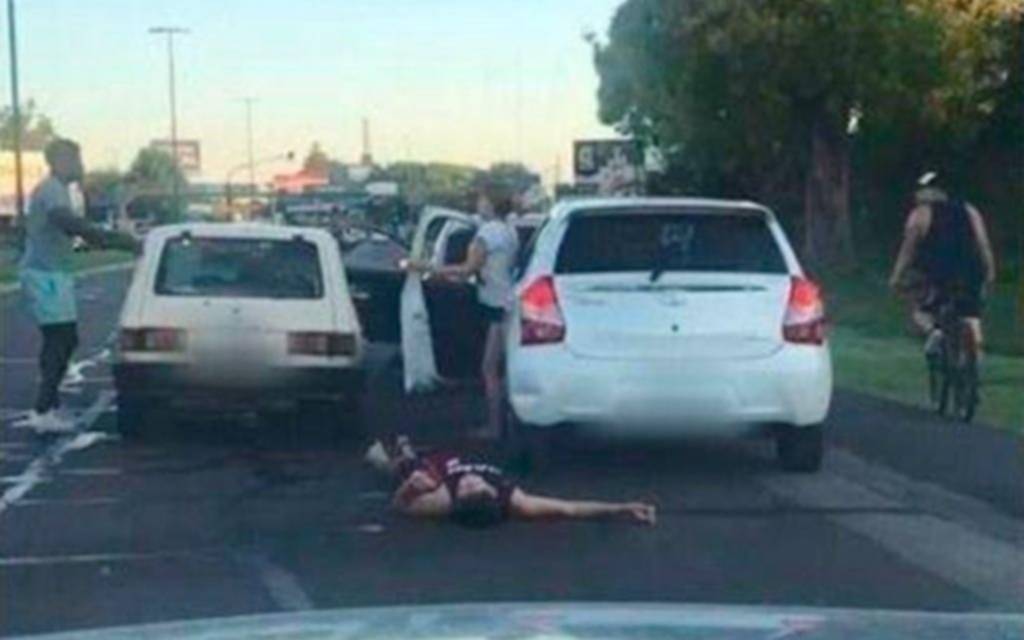 Luego de unas maniobras bruscas de tránsito, se generó una situación de tensión y ligó al menos un golpe de puño en la cara y una patada en la cabeza, que lo dejaron tendido en el pavimento, inconsciente.