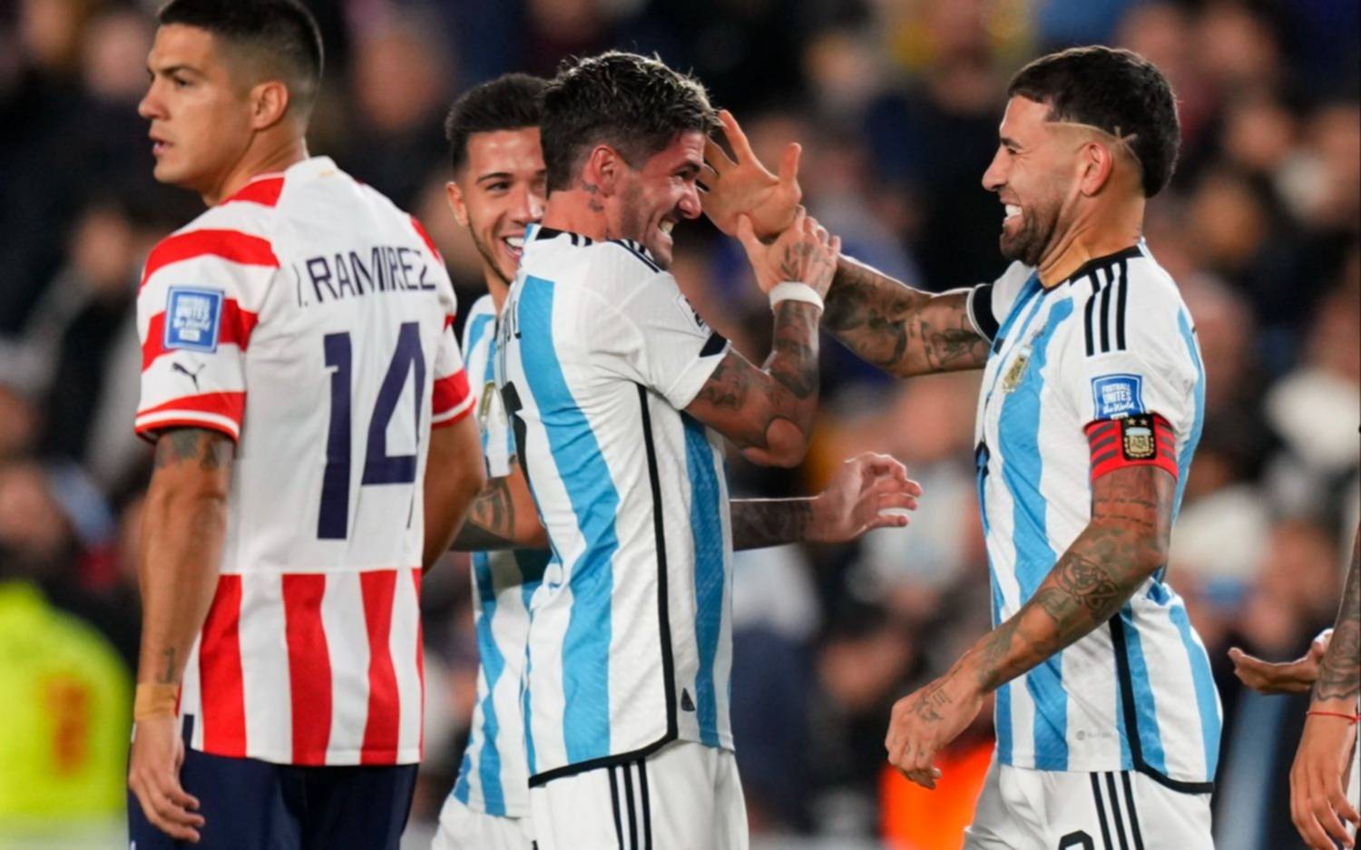 Argentina logró su tercera victoria en las Eliminatorias Sudamericanas del Mundial 2026, lo que asegura su condición de puntero de la competencia, luego de vencer esta noche a Paraguay 1 a 0 en el estadio Monumental. El campeón mundial, que tuvo a Lionel Messi como relevo en el segundo tiempo, se impuso con un gol de Nicolás Otamendi a los tres minutos de juego.