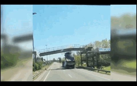 VIDEO. Así derribó el puente peatonal de la Ruta 36 el camión al que se le activó la batea