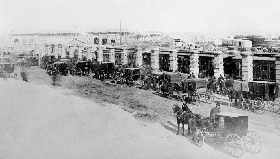 Cuando se iba llegando a la hora de arribo de un tren procedente de Buenos Aires, por calle 1 se formaban largas filas de carruajes de distinto tipo, que esperaban a los viajeros para llevarlos por Diagonal 80 hasta el centro de la ciudad.