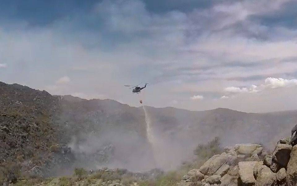 Los helicópteros también se utilizan para el traslado de brigadistas en la zona montañas.