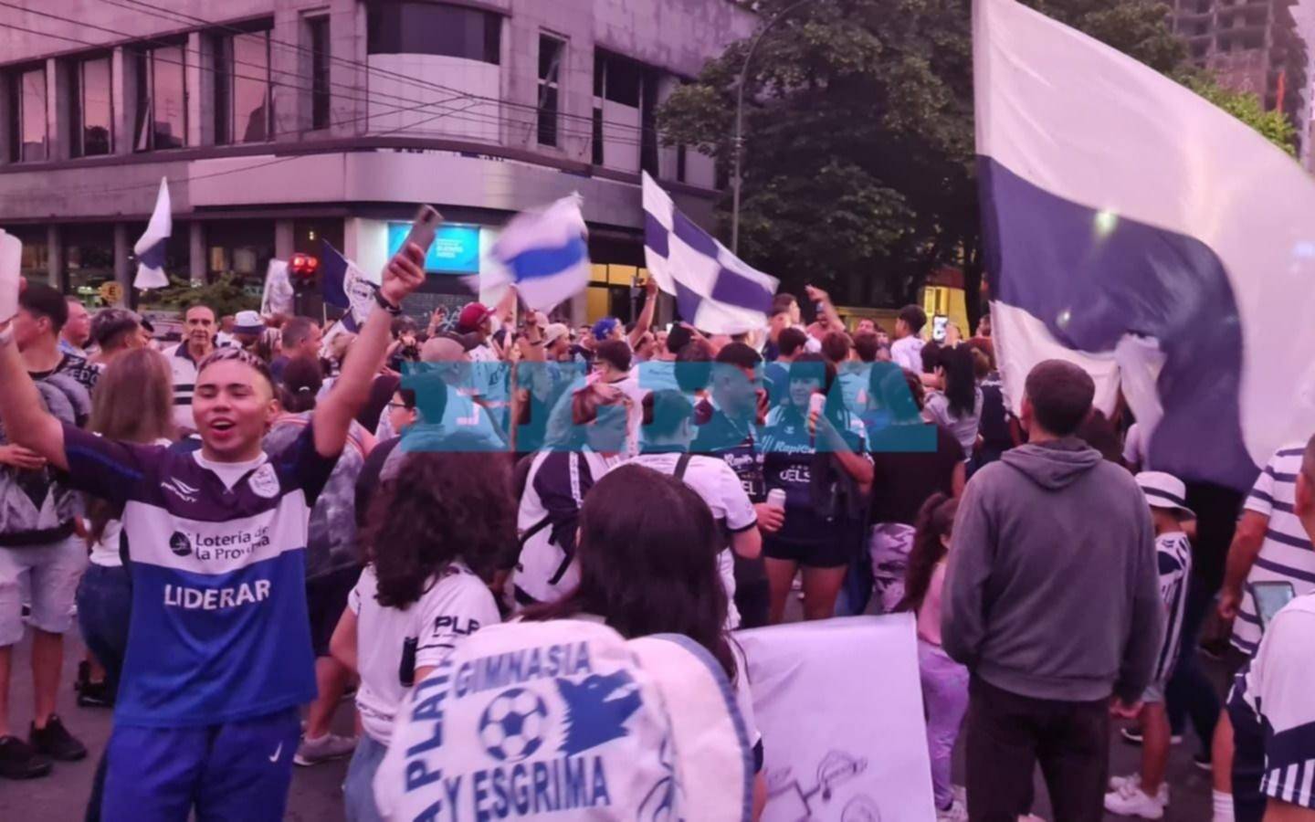 Banderas, cánticos y bocinazos, y el color azul y blanco tiñen la esquina tradicional de la Ciudad.