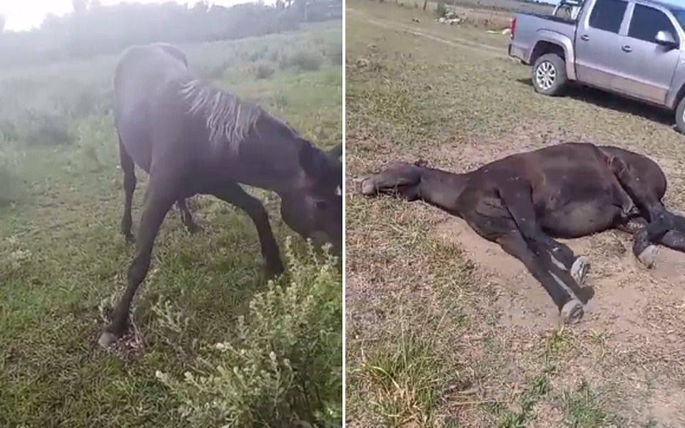 Este viernes un grupo de vecinos propietarios de caballos de Etcheverry detallaron que "la situación de está agravando" y que "en los terrenos en donde pastorean caballos se ven animales templando y varios que ni se pueden levantar del piso, como se ve en los videos".