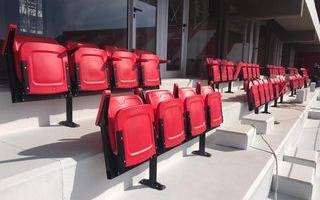 En total serán 8 mil las butacas rojas y blancas que en la previa de la inauguración habían sido pintadas con un material especial para recuperar un rojo que hoy asoma apagado por el sol y las lluvias.