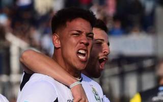 Alan Lescano y su festejo en el Tito Tomaghello / prensa GELP