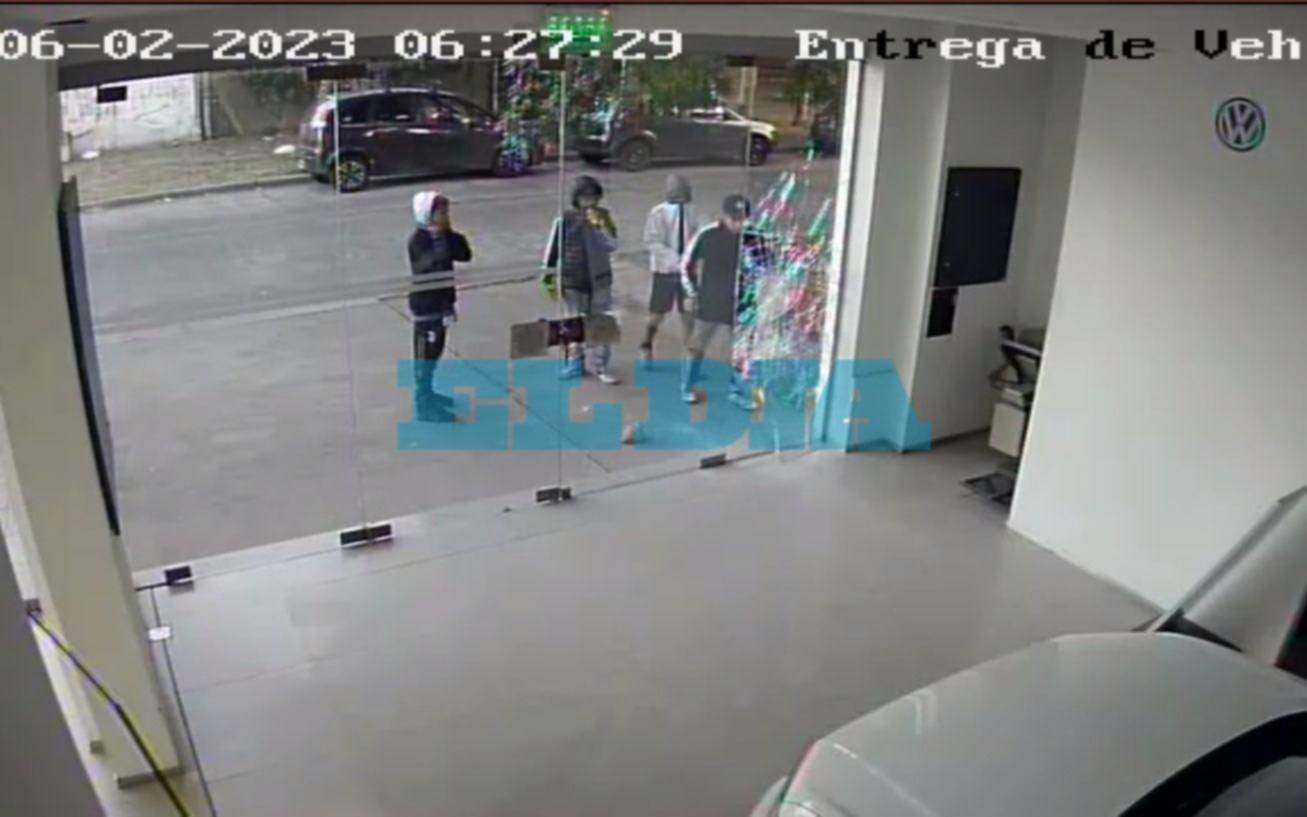 En esta oportunidad actuaron cuatro sujetos, presumiblemente menores de edad, que también rompieron uno de los blíndex sobre 525, de los más alejados a la Avenida 13, y así lograron acceder al local.