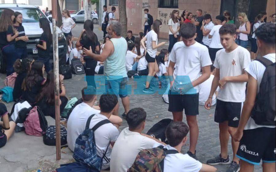 "Realizamos el reclamo al colegio y como no hubo respuestas decidimos hacer una sentada", explicaron alumnos. "Por ejemplo, hay un grado que no tiene aula, y son más de 50 estudiantes que tienen que ir a clases al SUM, en donde no hay ventiladores.