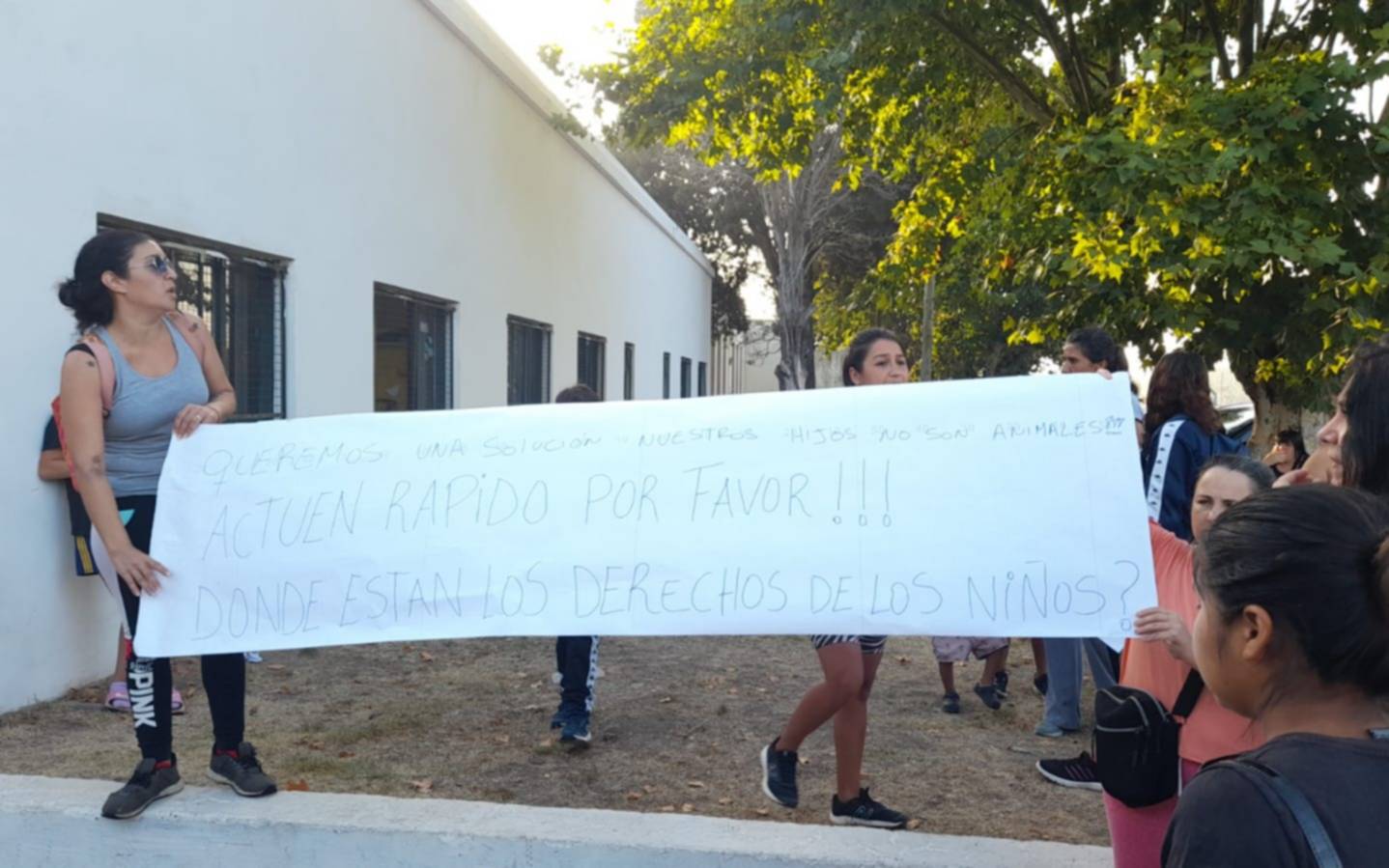 Uno de los casos fue la Escuela Secundaria Media Nro 27, de calle 35 entre 16 y 17, donde hicieron una sentada en las afueras del lugar por la falta de "ventiladores, estufas y agua potable".