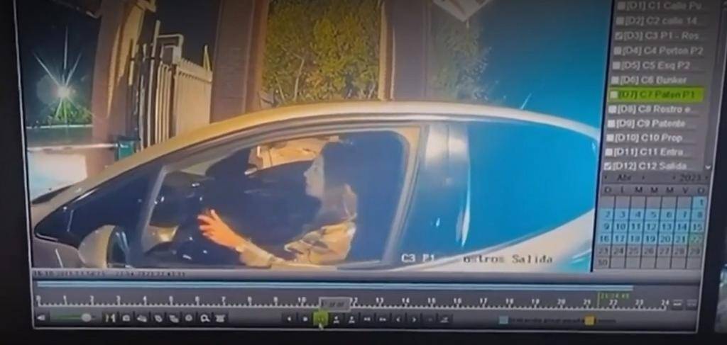 ❑.- 21.07: Ese habría sido el horario del golpe millonario. Con el domicilio vacío, tres sujetos ingresaron por la puerta principal. La mujer se quedó a bordo del auto.