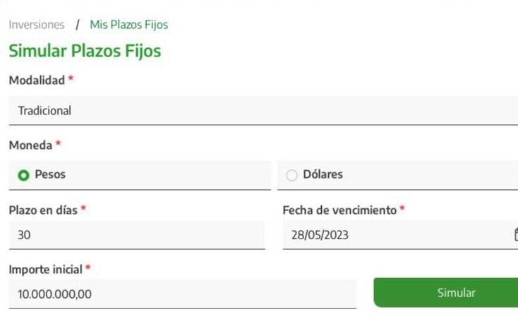- Constituyendo un plazo fijo tradicional de $50.000 a 30 días, al vencimiento voy a obtener $3.864,38.