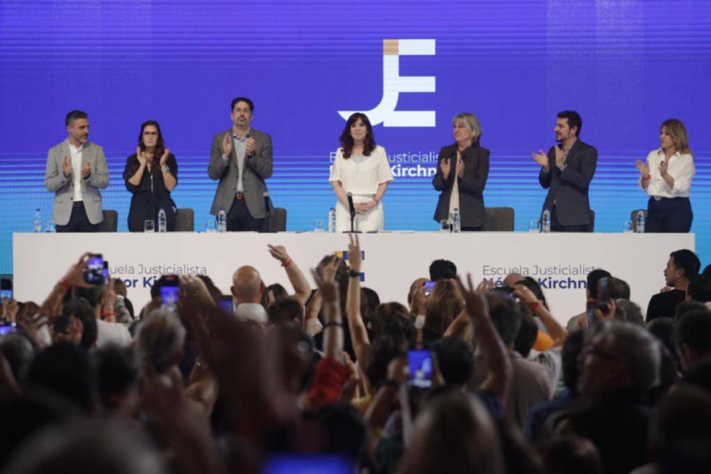 La Vicepresidenta encabezó el lanzamiento de la Escuela Justicialista Néstor Kirchner que lidera el ex ministro de Educación Nicolás Trotta, donde estuvo acompañada por funcionarios, dirigentes, legisladores, intendentes y representantes del sindicalismo, entre otros sectores del Frente de Todos. Entre el público se ubicaron el gobernador Axel Kicillof, y el titular del PJ bonaerense y fundador de La Cámpora, Máximo Kirchner, además de la ministra de Desarrollo Social, Victoria Tolosa Paz y el dirigente Juan Grabois.