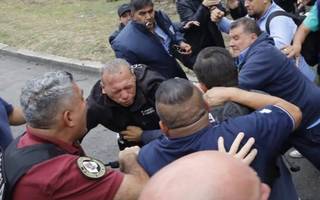 Así, acorralado contra una pared por espacio de más de 30 minutos, la ayuda de algunos policías, de unos pocos choferes que mostraban calma en medio de tanta locura y, de los muchos periodistas y camarógrafos que cubrían el hecho, Berni zafó de un mal mayor.