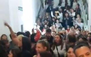 Una vez en el edificio ministerial de 13 entre 56 y 57, ingresaron al hall central en medio de un clima de efusividad, cantando y tocando el bombo.