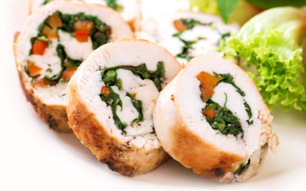 1. Deshuesar el pollo, abrirlo como un matambre (dejarle la piel). Salpimentar.