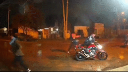 De acuerdo a las imágenes registradas por una cámara de seguridad instalada en una parada de colectivos, el efectivo y su novia iban a bordo de una moto roja cuando fueron abordados por los dos ocupantes de un rodado similar y de color azul que se le puso a la par.
