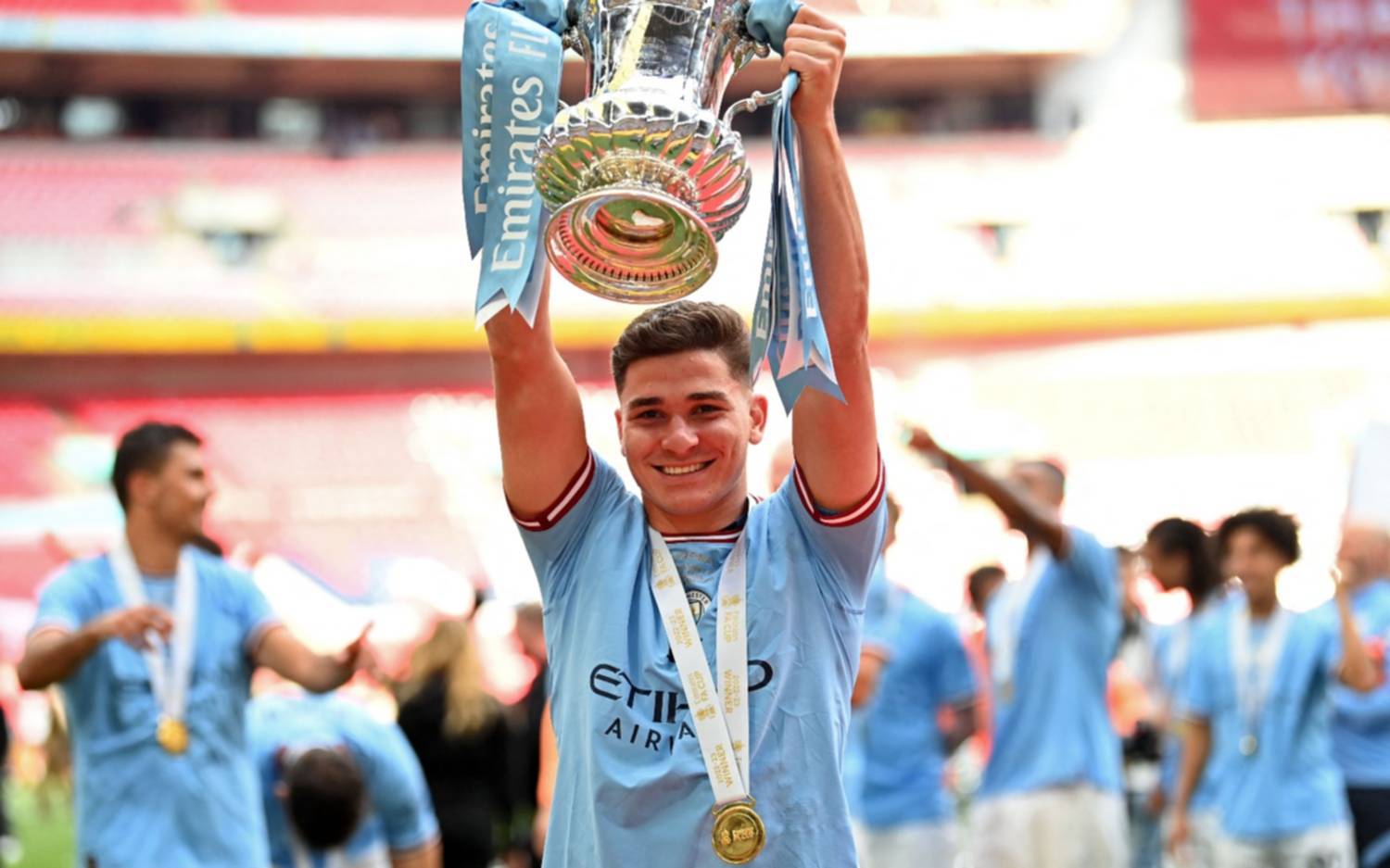 Manchester City se consagró hoy campeón de la FA Cup de Inglaterra con una victoria de 2-1 sobre su máximo rival, Manchester United, en la final disputada en el estadio Wembley. Julián Álvarez no sumó minutos y permaneció sentado en el banco de suplentes.