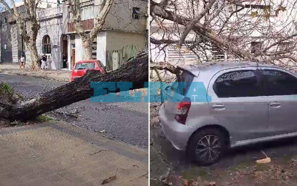 Ocurrió en Diagonal 77 entre 9 y 42. Allí, el tronca principal y las ramas cayeron justo por encima del Etios gris. "Las ramas se ve que amortiguaron la caída, sino el tronco lo aplastado todo", relató una frentista.