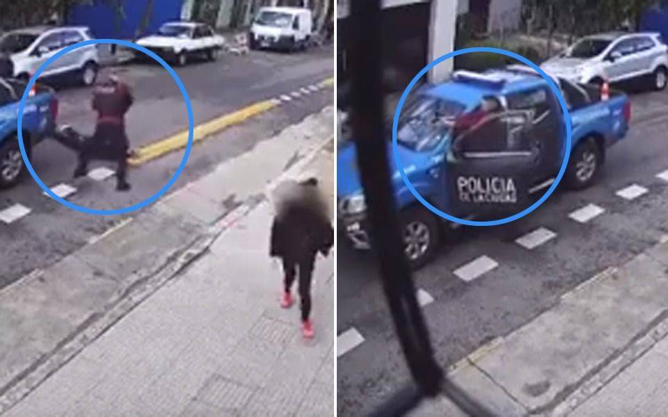 Pocos segundos después, se observa la llegada de un móvil de la Comisaría Vecinal 12 A, perteneciente a la División Despliegue Intervenciones Rápidas (DIR), cuyos ocupantes detienen la marcha, descienden con sus armas reglamentarias y disparan contra el agresor, que perseguía corriendo a su víctima.
