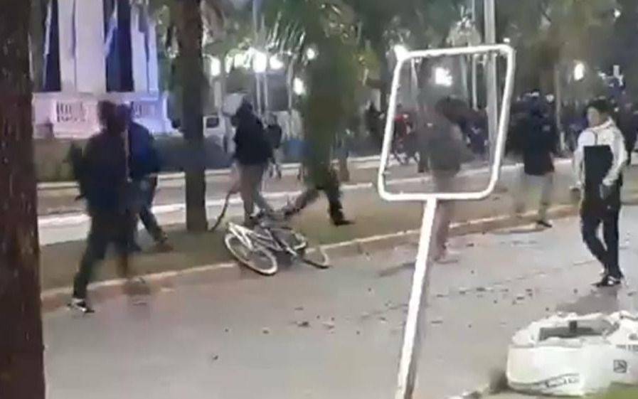 Los manifestantes rompieron una ventana de la dependencia policial y lanzaron una bomba molotov que provocó el incendio en uno de los ambientes de la misma. Además, arrojaron piedras y rompieron la puerta principal del Concejo Deliberante y cristales de la municipalidad.