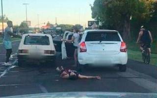 Todo pasó luego de una maniobra de tránsito, que motivó su reacción. El coche de la familia Colombo era guiado por una mujer y cuando se bajó del coche, por lo que entendió una maniobra que los había puesto en riesgo, a la altura de Centenario y 497, pareció estar en una velada de MMA.