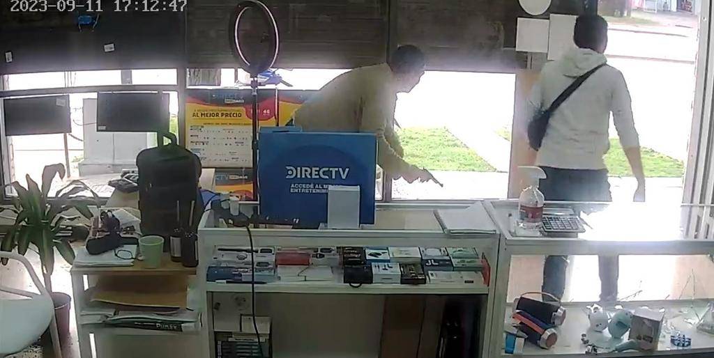 Las imágenes que captó una cámara de seguridad en una casa de celulares de Olmos, que resultó epicentro de un brutal episodio de inseguridad, provocaron escalofríos.