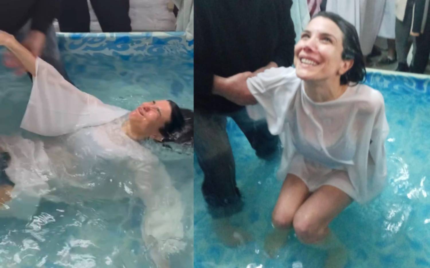 En las fotografías que compartió en su cuenta de Instagram se la puede ver ingresando a la pileta donde haría el bautismo, acompañada de sus seres queridos. Además, muy emocionada, lloró previo a la ceremonia.