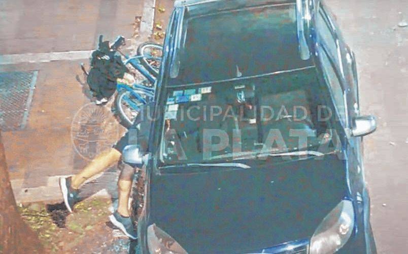 Según muestran las imágenes de las cámaras instaladas en la zona, pasadas las 3 de la mañana el sujeto se aceró a bordo de una bicicleta a un Renault Sandero color azul estacionado en avenida 53 entre 11 y 12, rompió el cristal de una de sus ventanillas con una piedra que levantó de la vereda y robó una serie de objetos que se encontraban en el asiento trasero.