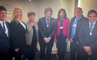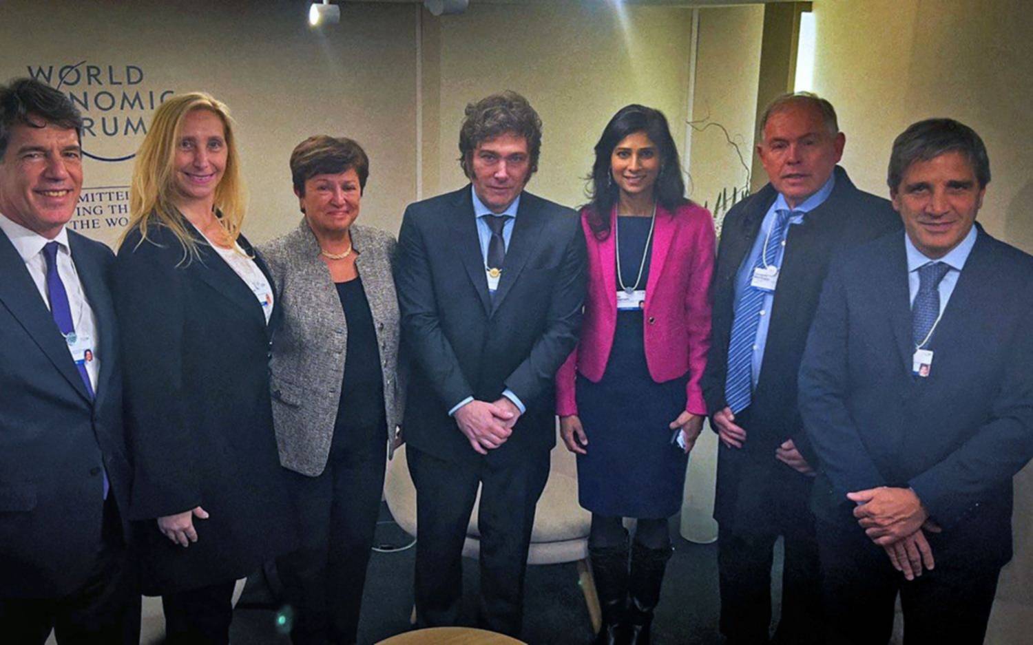 Los tres ministros que acompañaron al presidente Javier Milei en su viaje, Diana Mondino, Luis Caputo y Nicolás Posse, ofrecieron una conferencia de prensa internacional tras el discurso del jefe del Estado.