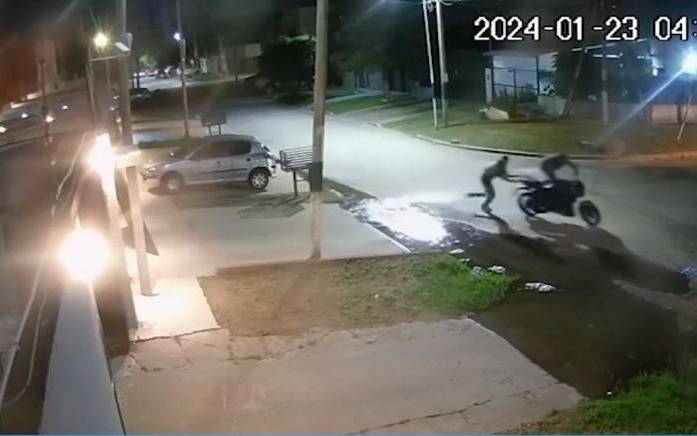 Los ladrones quedaron grabados por una cámara de seguridad cuando se hicieron de una motocicleta de alta cilindrada. Fue alrededor de las 4.54 hs de este martes.