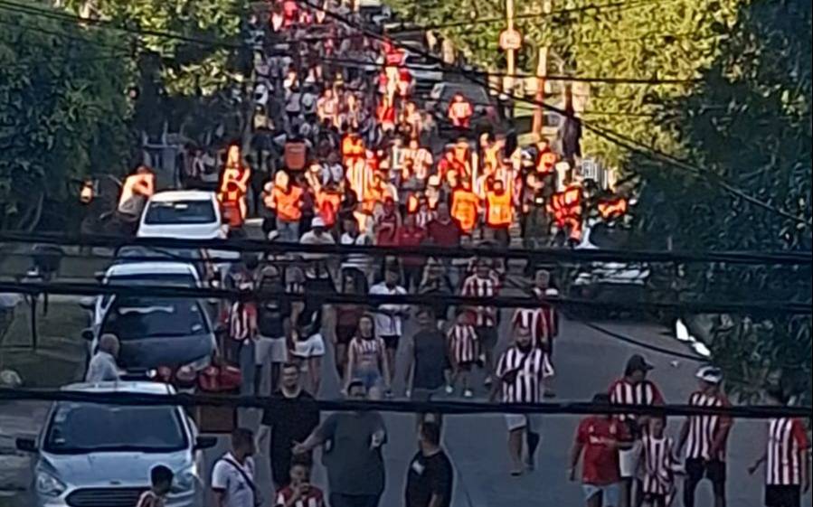 Miles de hinchas de Estudiantes llegaron desde temprano a Lanús para jugar en la cancha del granate. Pese a la incomodidad del horario, a mitad de semana y en vacaciones, nada les impidió acompañar al equipo.