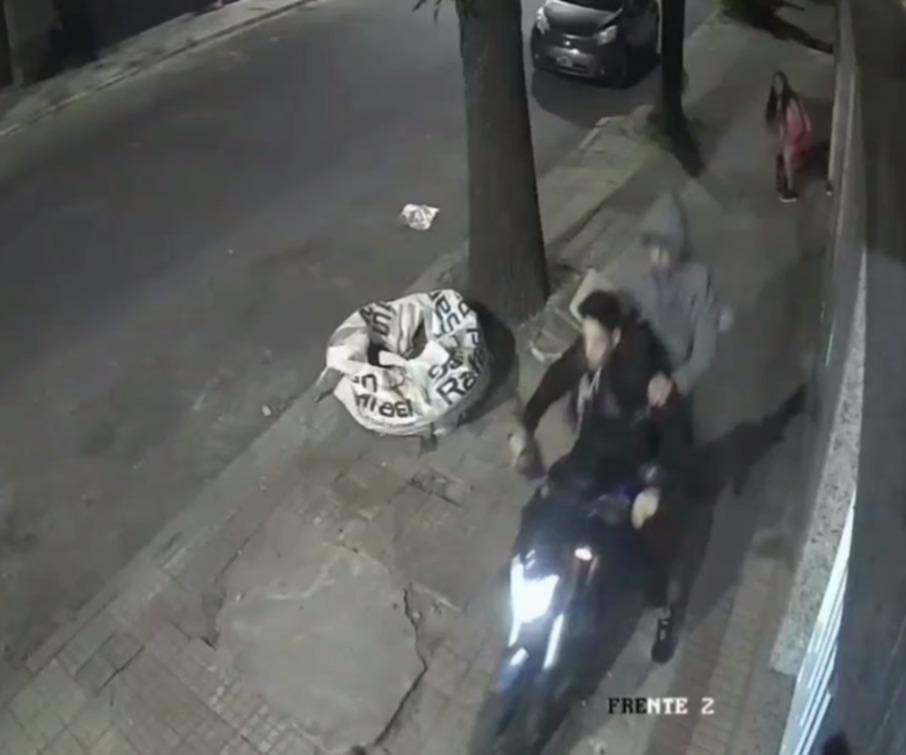 De acuerdo a las imágenes captadas por las cámaras, fueron dos los motochorros quienes al ver a la chica caminando, la interceptaron en pocos segundos: uno se bajó de la moto y en el intento de arrebatarle su celular, la tiró, la arrastró y dejó en el piso a su víctima. Ya con el teléfono robado en su poder, subió de nuevo al rodado y junto a su cómplice, se dieron a la fuga rápidamente.