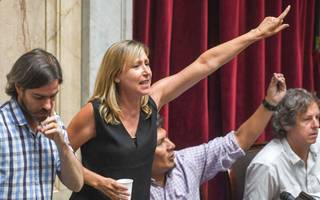 * La diputada nacional del Frente de Izquierda Myriam Bregman pidió que durante el día de hoy y mientras dure la sesión por la ley ómnibus “sean muchos y muchas los que estén aquí afuera (del Congreso nacional) porque el único lenguaje que entienden estos gobiernos es el de la movilización". “Tenemos que seguir reforzando esa herramienta que es la única que tienen los pueblos y que garantizan a trabajadores y trabajadoras que no revienten todo, porque es lo que buscan”, alertó en el comienzo de la sesión especial en la que se debate la Ley de Bases. Para la legisladora del PTS y ex candidata presidencial, “esto no es una ley” sino que “son muchas leyes y constituyen un verdadero cambalache”.