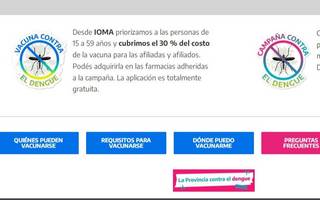 El IOMA, la obra social de la provincia de Buenos Aires, informó que desde ayer las personas afiliadas que tengan entre 15 y 59 años, y deseen hacerlo, podrán aplicarse la vacuna contra el dengue en las farmacias adheridas a la campaña, con un 30% de descuento y la aplicación sin costo.