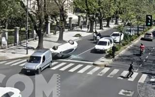 Al tratar de escapar, además, los hampones condujeron en contramano a lo largo de varios tramos. Y al llegar al cruce de la Avenida 7 y la calle 57, a cinco cuadras de donde había empezado todo, chocaron contra un Honda City conducido por una mujer, provocando que este vehículo volcara tras impactar contra un árbol. La escena, ocurrida ante la mirada atónita de muchos transeúntes, fue capturada por las cámaras.