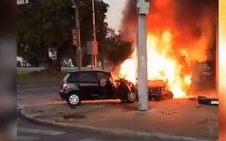 El video del momento | Dos autos chocaron en La Plata, uno se prendió fuego y murió el conductor