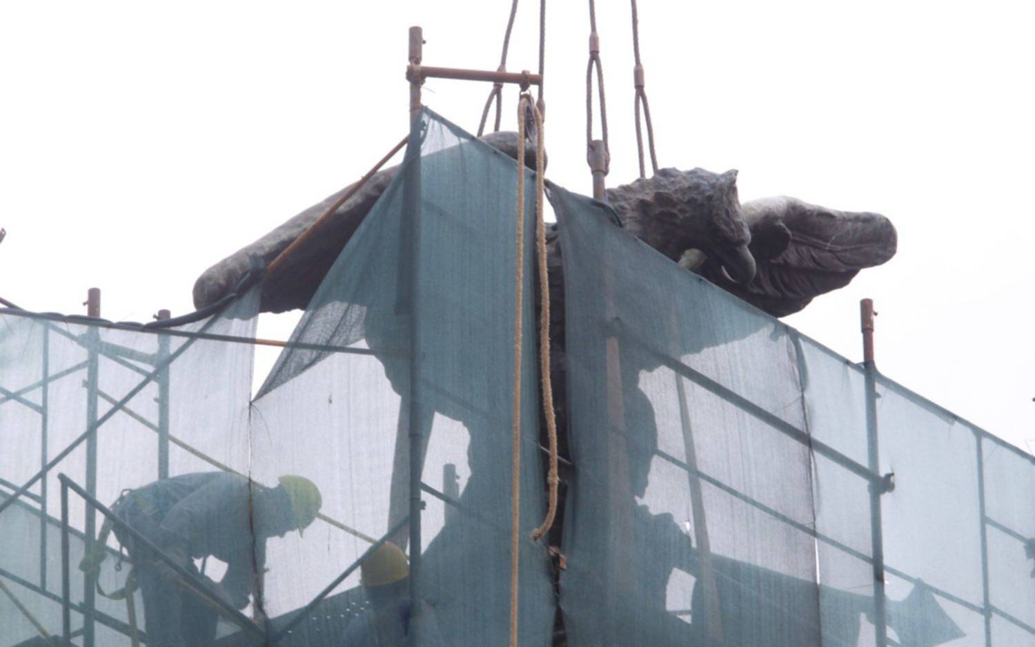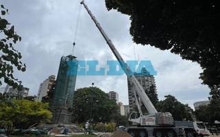 Bajo la lluvia de la mañana de este miércoles y con un megaoperativo, se llevó a cabo las maniobras y los preparativos para el traslado del monumento del Águila de la Plaza Italia, que forma parte de la remodelación que encaró la Municipalidad de La Plata en el marco de la puesta en valor de distintos espacios verdes platenses. Tal como informó EL DIA, desde muy temprano en el centro de la Ciudad se pueden ver grandes grúas y operarios realizando las tareas que, según explicaron, se extenderán a lo largo de la tarde.