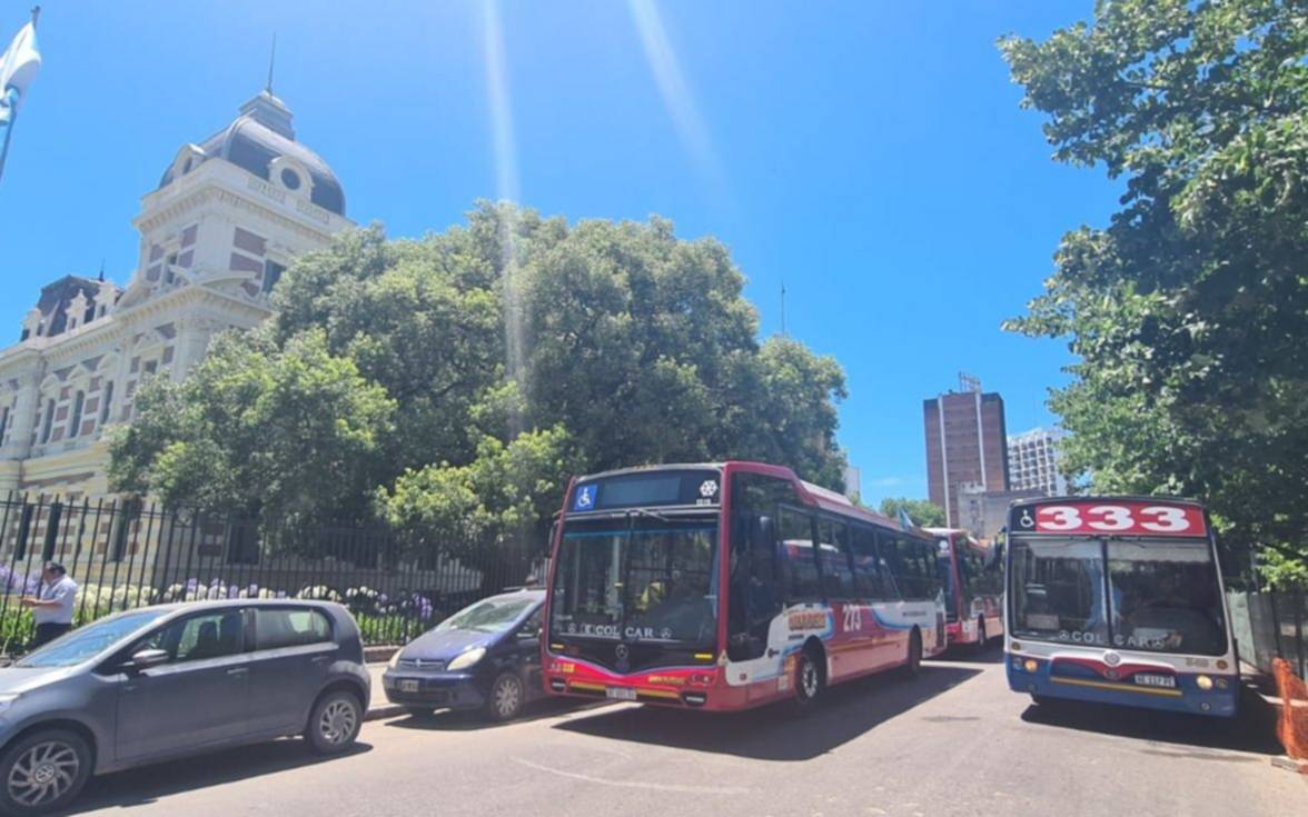 Unos 100 colectivos, poco antes de mediodía, bloquearon el tránsito sobre la calle 6, repitiendo la protesta del 6 de diciembre, cuando por la misma razón unas 200 unidades cerraron la circulación frente a la Casa de Gobierno.