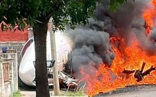 Un avión privado se despistó este mediodía cuando intentaba aterrizar en el aeropuerto de San Fernando y se prendió fuego luego de impactar en una zona de viviendas. La aeronave volvía a Buenos Aires luego de realizar un viaje a Punta del Este y pertenecía a la familia de Jorge Brito, dueño del Banco Macro y presidente de River Plate.