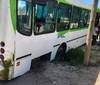 Un micro que llevaba chicos a la escuela se quedó encajado en un barrio de La Plata
