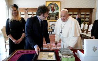 Milei se reunió con Meloni durante cerca de una hora en el Palacio Chigi, sede del Ejecutivo, donde fue recibido por la premier, y juntos escucharon a la banda militar que hizo algunas melodías mientras atravesaban la alfombra roja hasta el interior del edificio.