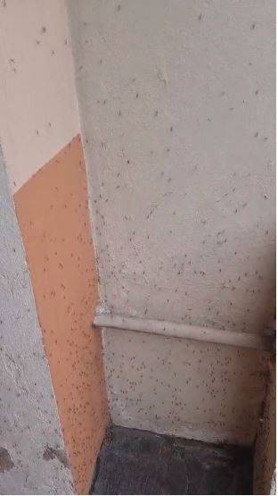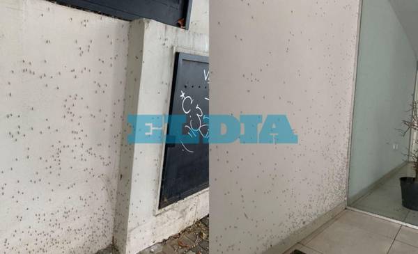 Imágenes de Plaza Paso que llegaron al Whatsapp de Diario EL DIA (221 477 9896), revelaron el estado en el que viven este domingo los frentistas. Las paredes están tapadas de insectos que, como se puede observar, tienen un tamaño más grande de lo esperado.