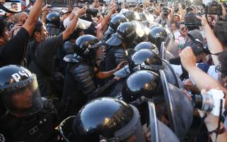 Efectivos policiales lanzaron gases lacrimógenos y dispararon balas de goma contra los manifestantes, incluso los que estaban sobre la vereda y la Plaza del Congreso. Anoche, antes de las 21, diputados de la Izquierda y de Unión por la Patria salieron a las calles para intentar mediar y frenar la represión que ya llevaba más de dos horas. También reclamaron sin éxito que la sesión se frenara con un pedido que fue descartado por el oficialismo.