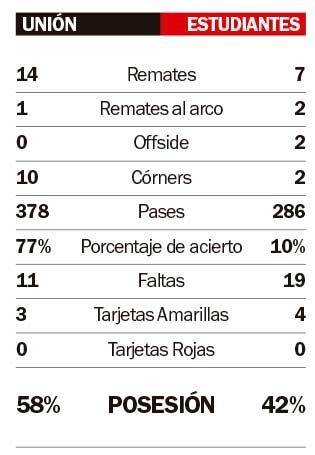 Los últimos minutos del primer tiempo fueron los peores de Estudiantes. El desconcierto externo se trasladó al campo. Unión, entonces, con dos o tres pelotas al área complicó al arquero Mansilla y a los centrales albirrojos, que tuvieron que tomar aire como en un combate para seguir. No fue buena esa última imagen antes de irse al descanso. Las modificaciones pagaban dos con cincuenta.