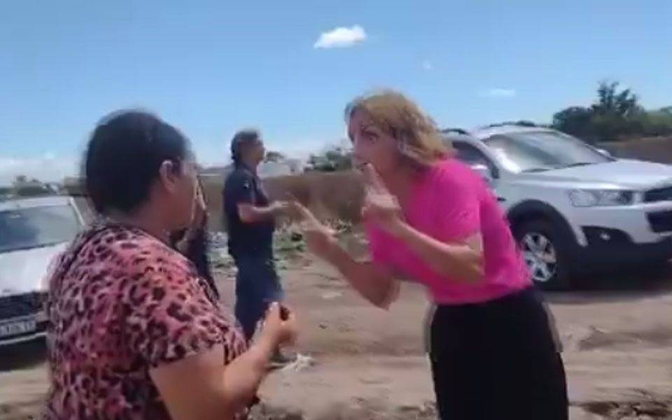 Ocurrió en la megatoma de Los Hornos cuando la funcionaria se trenzó en una caliente discusión con gente que aparentemente vive en el predio de ex Club de Planeadores.