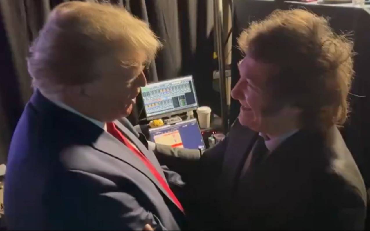 Los empresarios se funden en un abrazo y se escucha que Trump le dice a Milei que “puede hacerlo bien” e insiste con la frase “Make Argentina great again” (Haz grande a Argentina otra vez).
