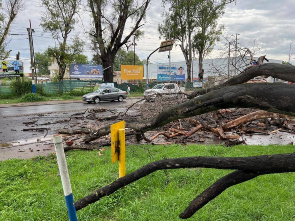 Los fuertes chaparrones que se registraron principalmente a primera hora de la mañana produjeron anegamientos en el casco y la periferia. Siguen cayendo árboles. Se mantiene el alerta meteorológico en la Región