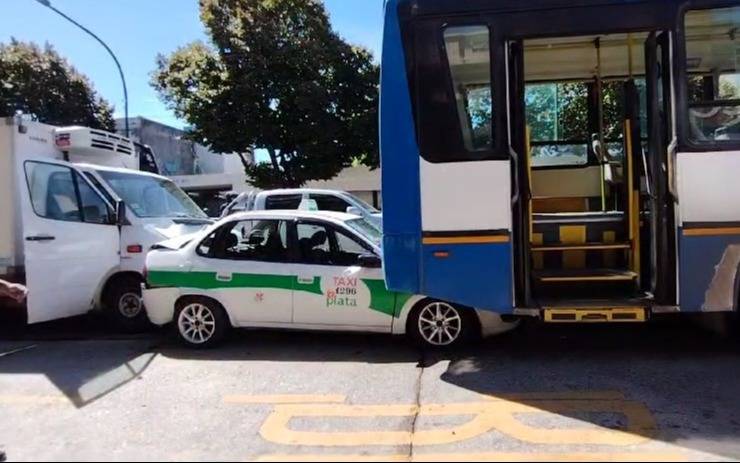 Uno de estos incidentes viales ocurrió en 7 y 33, donde, por causas que ahora se investigan, un micro de la Línea Norte y un camión terminaron haciendo “sándwich” a un taxi.