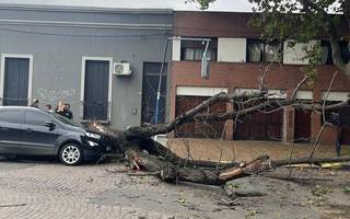 Uno de los daños que se están repitiendo -entre ayer y hoy- es la caída de árboles. Esta tarde, en plena avenida 13, un árbol se desplomó y cayó encima de un automóvil.