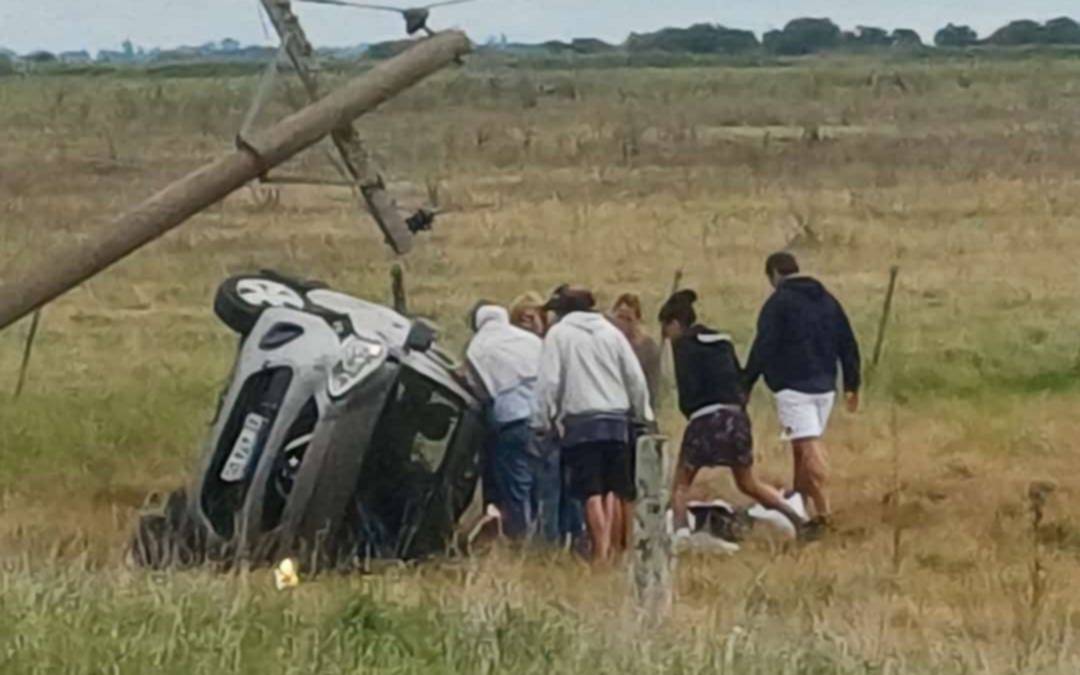Según los informes preliminares, la conductora, identificada como residente de San Isidro, perdió el control del vehículo por razones que se intentan determinar, lo que provocó que el automóvil saliera de la ruta y volcara. Los ocupantes del vehículo incluían a un joven de 31 años, una mujer de 40 años y otro joven de 24 años, este último trasladado al Hospital de Doloresen estado inconsciente.
